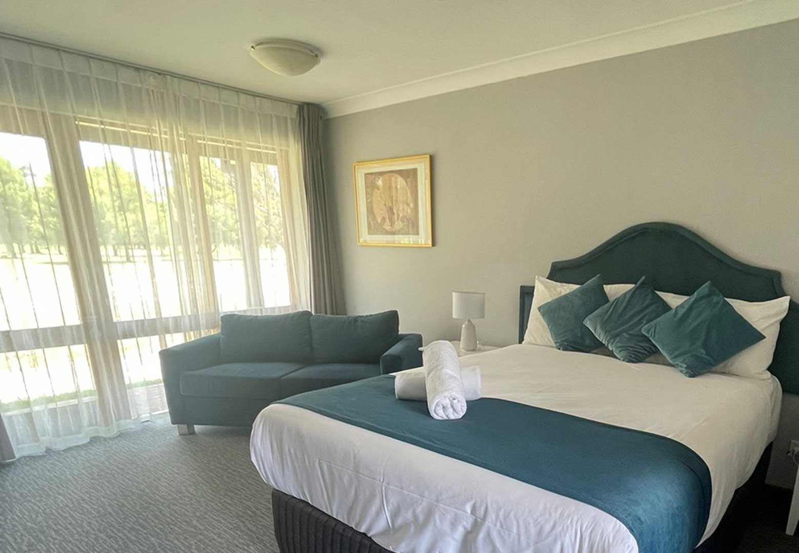 This well-appointed room features a luxurious pillow-top queen bed and a comfortable single bed, accommodating up to three guests. Enjoy the modern ensuite bathroom equipped with a large rain shower head, and take in the serene views of the adjacent Forbes Golf Course from your private patio. Additional amenities include a 42″ LCD TV, a lounge and writing desk, dining table with chairs, microwave, fridge, tea and coffee making facilities, super quiet split system air-conditioning, and free Wi-Fi access. Guests can also benefit from daily room service and the convenience of charge-back dining from the nearby Golf Club restaurant.